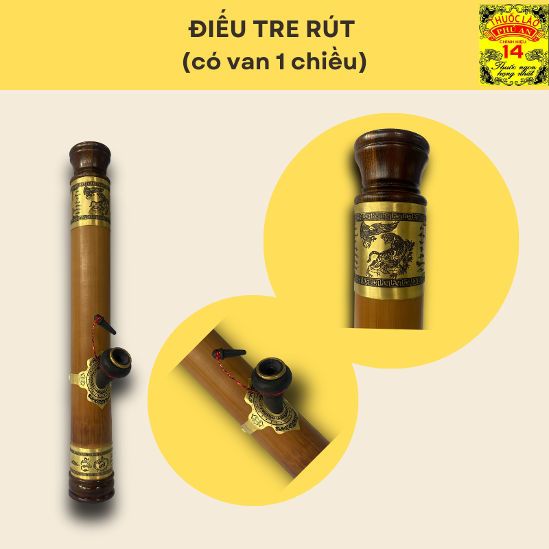 – Chức năng: Điếu rút, nhỏ gọn tiện lợi, thích hợp mang đi chơi, đi công tác… Điếu cày rút có van 1 chiều đổ nước từ miệng điếu, hạn chế rỉ nước.